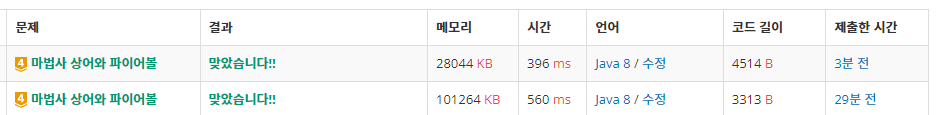 2. 매 명령마다 fireball을 담는 이차원 배열을 새로 만들어 주지 않은 이득은 있는 듯하다.