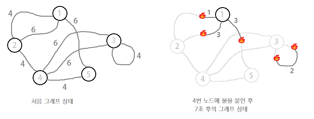 서훈이는 오늘 있었던 알고리즘 과목 기말고사를 망쳐서 기분이 좋지 않다. 서훈이는 스트레스도 풀 겸 시험 문제로 나온 그래프를 불로 태우려고 한다.